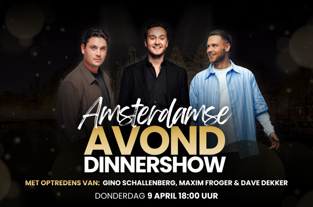Op 9 april brengen we een avond vol muziek, gezelligheid en heerlijk eten. Geniet van een compleet verzorgde 3-gangen diner terwijl je wordt vermaakt door: Gino Schallenberg, Maxim Froger & Dave Dekker